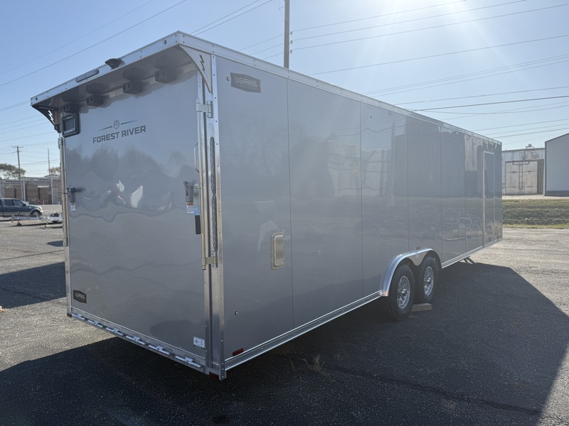 Standard Equipment: YEAR : 2026 NEW MAKE: LIGHTNING BY FOREST RIVER MODEL: LTFCH828TA3 VIN#. 5NHULTD23TM141340 ALL STANDARD OPTIONS FOR MODEL INCLUDING (2) 5200 LBS SPRING AXLES. WITH ELECTRIC BRAKES BOTH , TRAILER HAS 10,000 GVW , ALL ALUMINUM FRAME, UPRIGHTS AND BEAMS 16” O.C FLOORS, WALLS AND CEILING, 6 LUG 15” WHEELS, 32” SIDE MAN DOOR, .030 EXTERIOR SIDING , ONE PIECE .024 ROOF, ALL LED LIGHTS, BACK UP LIGHTS IN TAIL LIGHTS, 6’-6” INSIDE HEIGHT , 6’-8” RAMP DOOR OPENING, REAR BEAVER TAIL, 28’ BOX + 2’ V NOSE INSIDE IS 29’-8”, INTERIOR LED LIGHT AND MORE. Seller's Notes: OPTIONS ON THIS TRAILER ARE 1. REAR SPOILER WITH LOADING LIGHTS AND SWITCH 2. E-Z FLEX EQUALIZER UPGRADED SUSPENSION 3. 72” WIDE 54” TALL SIDE ESCAPE DOOR 4. REINFORCED REAR RAMP DOOR ( HEAVY DUTY ) 5. ADDED REAR RAMP DOOR HINGE 6. 3” REAR RAMP DOOR BUMPERS 7. REAR RAMP DOOR VICE LOCKS 8. STRIKE PACKAGE INCLUDING - ALUMINUM WHEELS, WHITE VINYL WALLS, (2) IN WALL SALEM VENTS, ADDED INTERIOR LIGHT 9. ALPHA RUBBER FLOORING 10. EXTERIOR LIGHT PACKAGE INCLUDING ADDITIONAL TAIL LIGHTS , (4) ADDITIONAL CLEARANCE LIGHTS